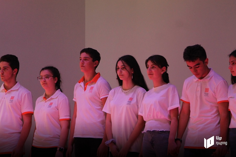 The Arts Week kicked off with the performance by the dramatic art group guided by Gabriel Sundukyan State Academic Theater director Vardan Mkrtchyan. The 11th grade students staged Avetik Isahakyan’s Servant Simon performance, while the 12th graders came out with Hovhannes Tumanyan’s A Drop of Honey tale. The strong performing skills and impressive acting received enthusiastic appreciation of the audience. Milena Mirumyan and Aghasi Barseghyan performed monologues.