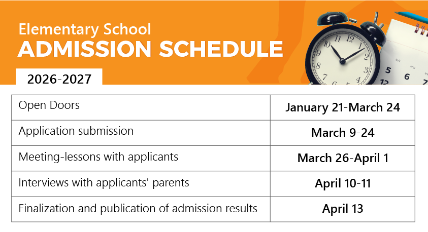 If during the submission of the application, it turns out that the parents missed the Doors Open Day, one more event is organized for them before the admission exams. The children of parents, who have already submitted the application but did not attend the Doors Open event, will not be admitted to the school.